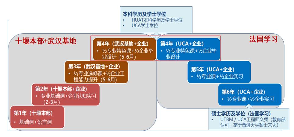 学院与东风众多板块以及在汉法资企业等签署合作协议,为学生提供研发实习和就业岗位,也得到开发区及法国驻汉总领事馆大力支持。学生除选择企业就业外,也可继续赴法深造,参加中法UCA(UBP)-HUAT 中法“3+3/4+3”本硕双学位项目,攻读法国工程师文凭(高于法国普通硕士文凭)。