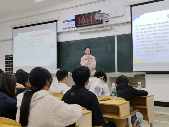 会上,何老师指出,心理委员和寝室长是学院了解学生动态、关怀学生成长的重要力量,身处同学之中,最能第一时间发现潜在问题。他希望大家珍惜培训机会,增强责任意识,学会识别常见的心理困扰信号,掌握基本的沟通与陪伴技巧,争做同学们的“知心朋友”和学院安全稳定的“前哨阵地”。随后,湖北医药学院优秀学生代表结合当前大学生常见的学业压力、人际交往、生涯规划等现实困惑,深入浅出地讲解了心理健康的标准、常见心理问题的识别与应对、以及倾听与共情的沟通技巧。
