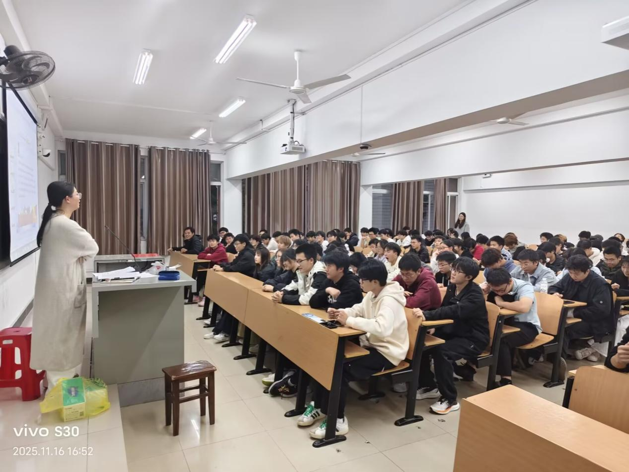 本网讯(文/图 余婧靓)为提升学生法治素养,近日,智能网联汽车学院开展法律法规宣传教育活动。活动以专题宣讲、案例剖析形式,由学院乔老师解读《民法典》《治安管理处罚法》等大众熟知法律,聚焦校园贷防范、网络言论边界、兼职权益保护、学术诚信规范等核心话题,厘清法律红线,传授风险规避与维权方法。